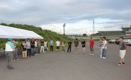 会場がレーシングコースに挟まれていることもあり、地声ではなかなか届かないのでハンドマイクを
