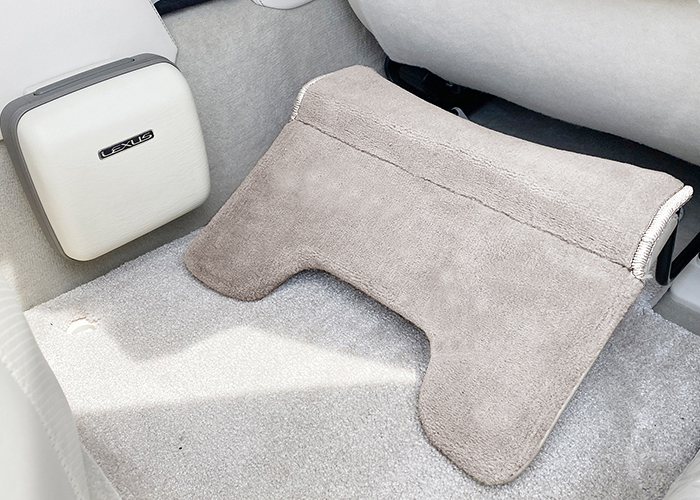 30セルシオ用オットマンを装着したかったのは、前席のシート台座に装着するので、走行中にガタつくこともなく、シートの前後スライドに合わせて一緒に動いてくれること、見た目が純正設定があるかのような違和感のなさなど、自身がこんな設定があればと思う部分を全て叶えてくれるので、どうにかして装着したいと考えておりました。