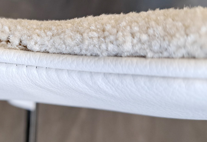 一番理想とする仕上がりの色味、ただメローホワイトに近い色味の素材があるのか、または着色で再現できるのかが心配、表面は擬似レザーを用いて汚れた時のメンテナンス性をよくする。裏面は近似色カーペットを用いてカラーコーティネートを行い自然な設置感を目指す。