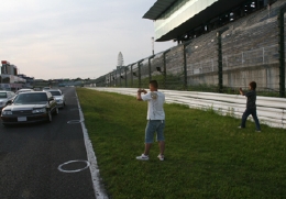 撮影している方がいる中、サーキット路上で座って