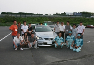 体験走行の全てのプログラム終了後にお世話になった鈴鹿サーキットのスタッフの皆さんと、先導車レジェンドを入れての記念撮影。