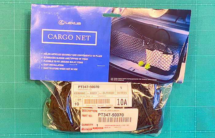 トランク開口部に取り付けているカーゴネット、一時的に30後期セルシオから拝借して装着していましたが、やっとUSディーラーオプションのLS600h用(LS460共通)のが入手できたので、装着することができます♪