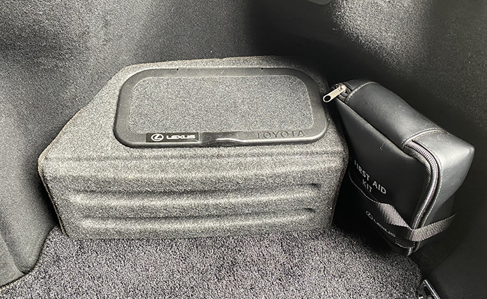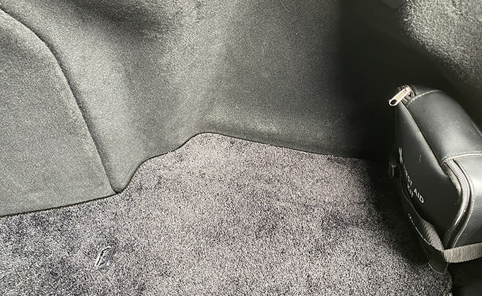 設置場所はトランクルームの運転席側の後端部、いい具合の凹み形状。