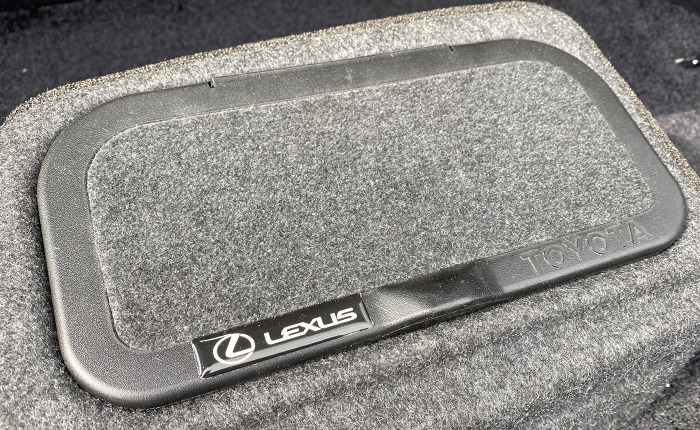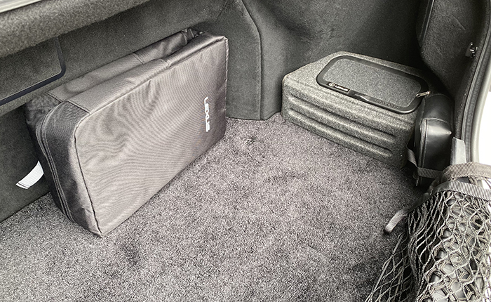 LSのトランクルームに設置するので、雰囲気を高める為にLEXUSロゴを貼り付け。