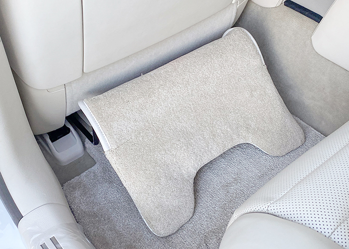 LS600hL エグゼクティブには左後席に電動オットマンが装着されていますが、使用性や快適性が本当に良いのかと自身では疑問に思っていて、むしろ30系セルシオでオプション設定のあったオットマンの方が、使用性及び快適性が良いのではと考えておりました。加えて快適装備が左後ろのみというのもあまり好きではなく、右後席にお乗りになられる方にも快適に車内で過ごしていただけるように、自分なりの後席快適を求め30セルシオ用のオットマンの表皮を専門業者さんに張り替えていただき、車両取り付けに必要な自作ブラケットを作成し、後席快適装備の充実をおこないました。