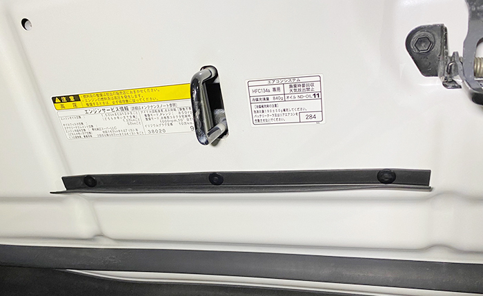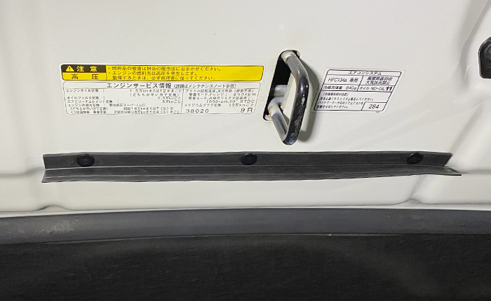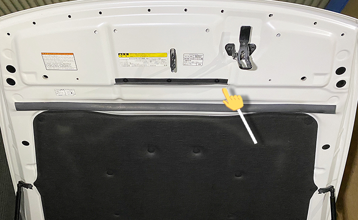ボンネット裏面の穴隠しとLSの装備充実をはかるべく、寒冷地仕様のフードエアインテークダクト シール (以下ラバー)を取り付けました。