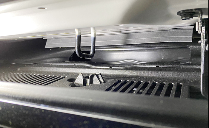 ボンネットが閉まるギリギリの状態で、どのようになるか見てみると、エアインテークの手間に仕切りを作るような感じになっていて、きっと風雪で直接雪や水分を吸い込まないようにしているだと推察します。