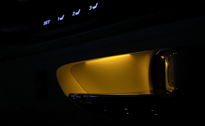 ドアベゼル照明(フロント左右・リヤ左右に実施)