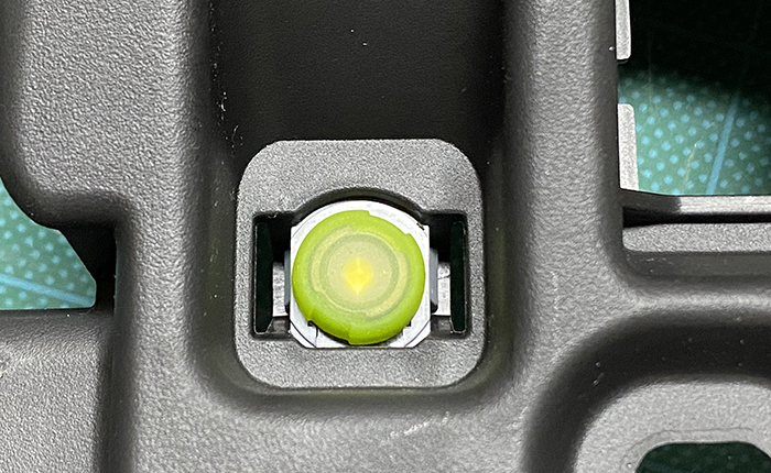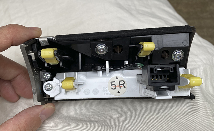 スイッチASSYを取り外して分解、ベゼル部分にフィルターを貼り付け。