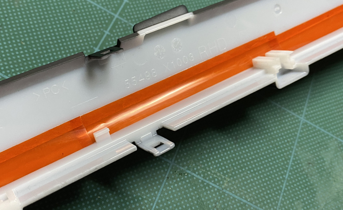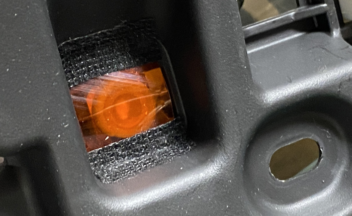 ドアトリムを外して、ベゼル照明とベゼルの隙間にフィルターを挿入。