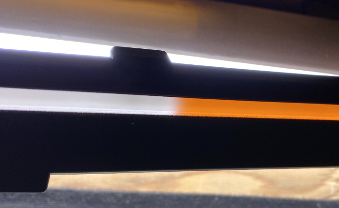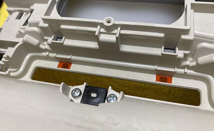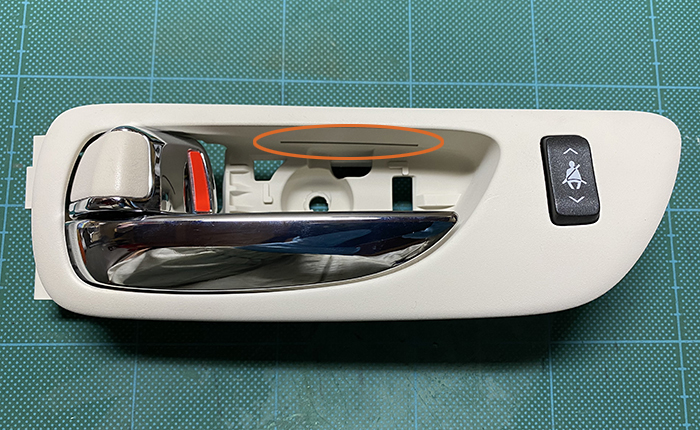 ドアベゼルの取り外し、オレンジ丸部分の裏面にオレンジフィルターを挿入。