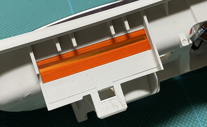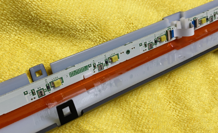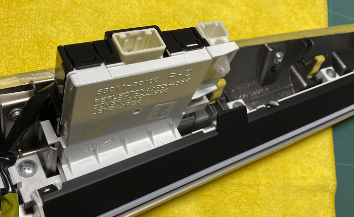 照明LEDユニットを取り外し、オレンジフィルターを入れてユニットの取り付け。