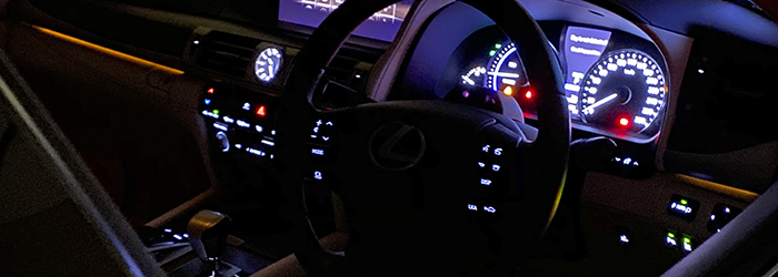純正のアンビエントライトはホワイトで、スイッチ類と同じ色で光るので、夜間運転で若干目障りでした。またメローホワイト内装にホワイトのアンビエントライトが寒々しい色に感じ、個人的にあまり居心地の良い車内ではありませんでした。