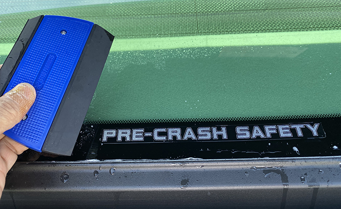 ③ステッカーの位置を微調整して、この場所でOKとなればスクイージーを用いてエア抜き。