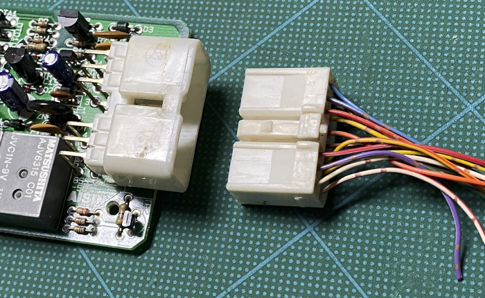 14ピンコネクターなので、センター下2ピンにプラスとマイナス接続