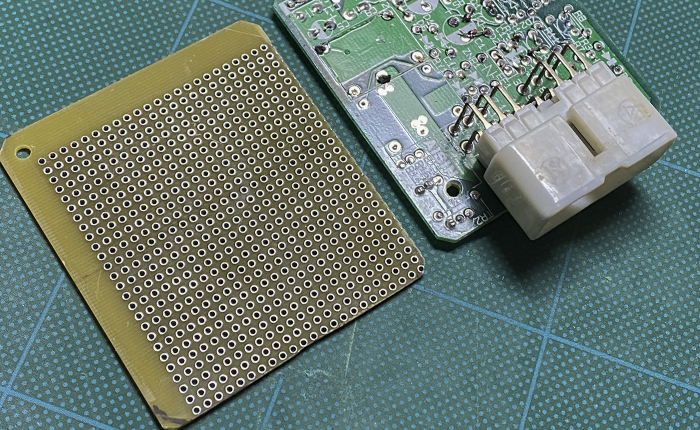 素人作成の単純回路なので、手持ちの基盤ベースにコネクターを移植