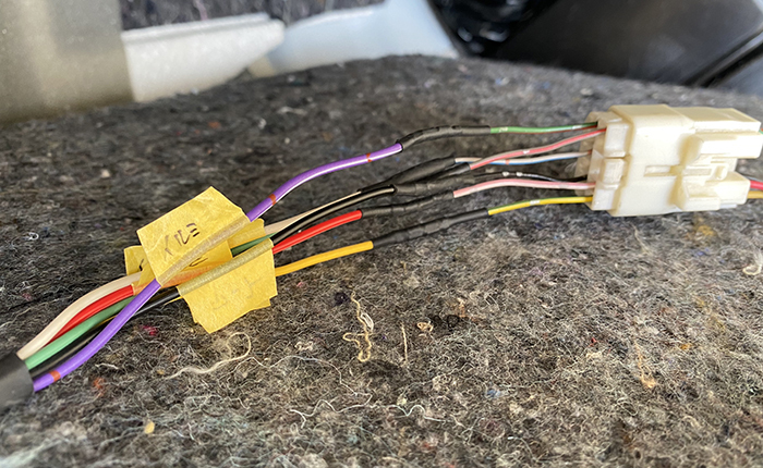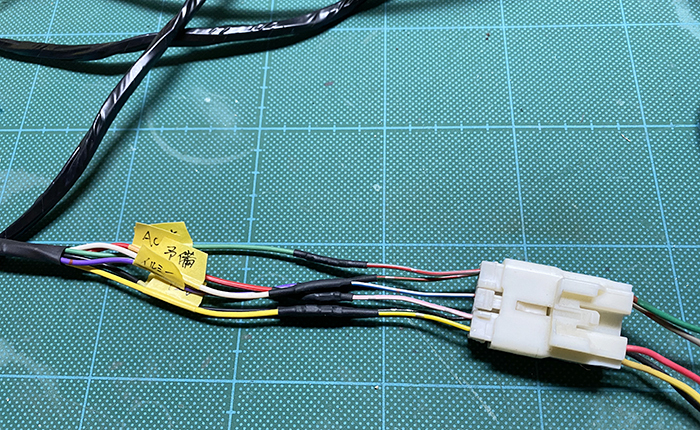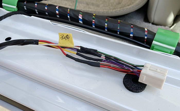 リヤドアスカッフプレート周辺までのハーネス延長、大まかに長さを測り事前にハーネス作成。