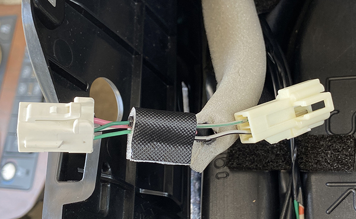 カプラー手前のハーネスの皮膜を少しむてハーネスを接続、スプライス端子で圧着