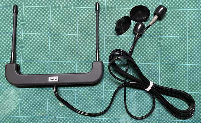 入手したTZ-841形SBアンテナ、車内窓ガラスに吸盤でくっつけるタイプ。