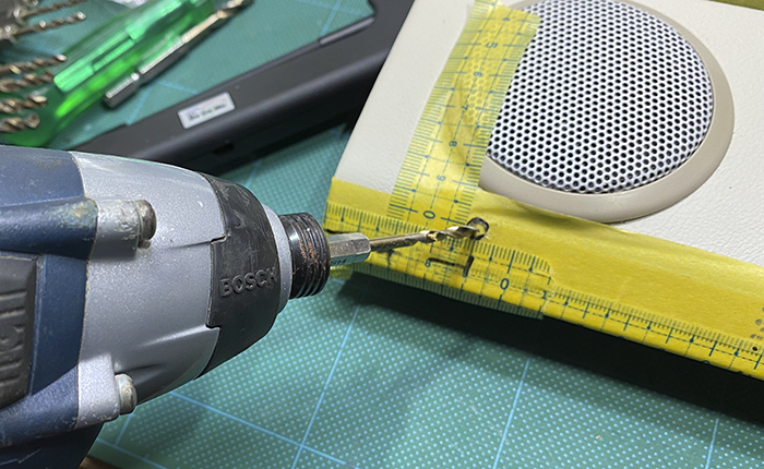 開けることにします。穴の位置をマーキングしアンテナを並べて左右