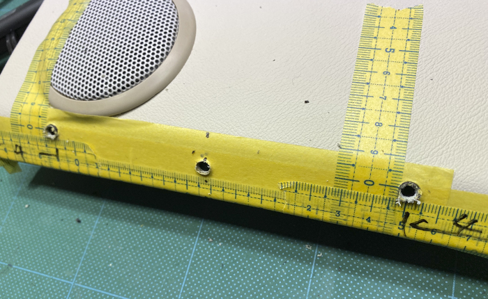 アンテナ固定用に左右2箇所の穴と、中央にダミーハーネス用の穴を