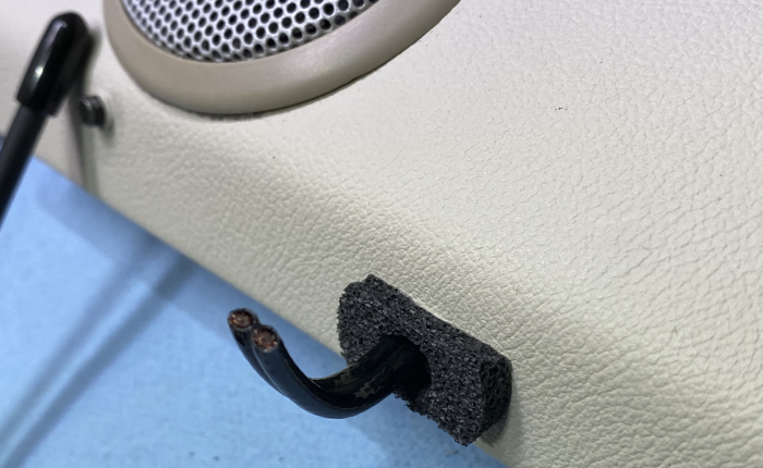 手持ちの穴あきスポンジを被せて、純正風な仕上げにしました。