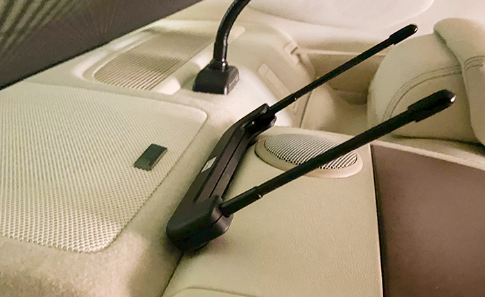 TOYODA純正 後席専用自動車電話のシステムバージョンアップで、専用スピーカー設置を行い、その最終編として、ハンズフリーシステムを追加し、リヤ専用の自動車電話は完成していましたが、見た目の充実度を目指し車内アンテナを装着しました。