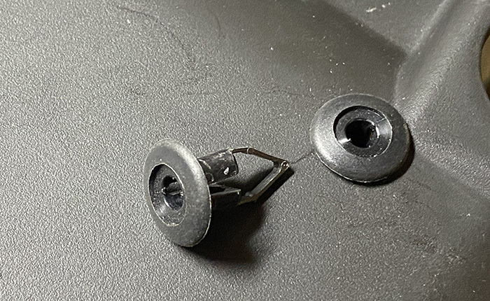 上画像のトヨタの樹脂クリップ台座を利用して穴の化粧をします。