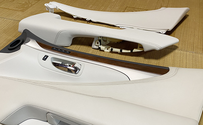 ネットオークションで偶然見つけたLS600h後期のメローホワイト内装ドアトリム。