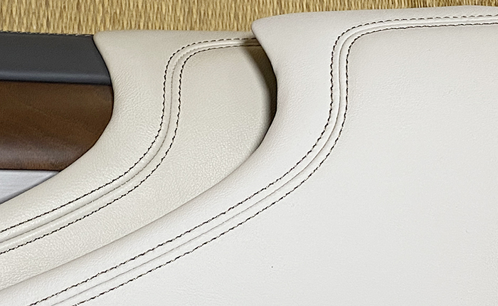 この組み合わせは、LS600hシリーズで本革ダッシュを選択した場合は、ドアトリムの素材が上記のものに変更されます。BADER/GSTレザー共に海外のレザーメーカー、結構こだわって素材を選択しているのに、カタログには記載がされていないのが好感がもてます。
