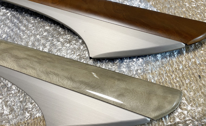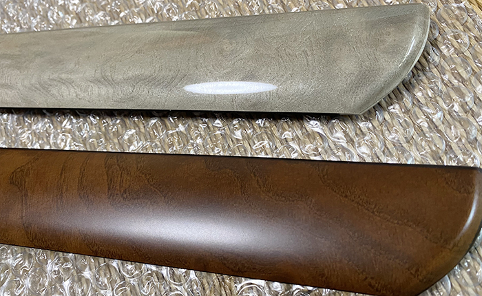 画像のウッドは両方ともアッシュバールウッド、素材が同じですがそれぞれ仕上げが異なります。