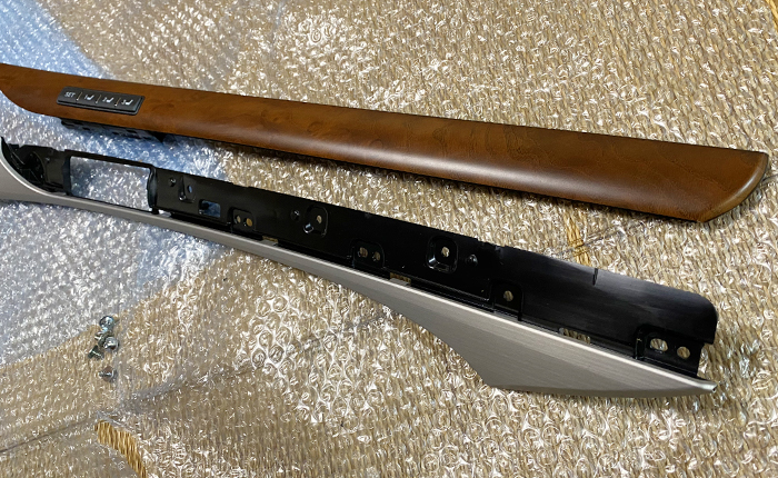 ドアトリムからオーナメントとアームレストを取り外し交換準備。