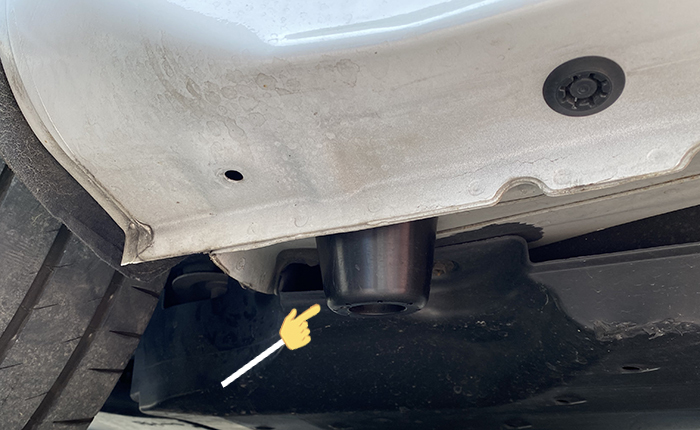 装着位置画像になります。左右リヤタイヤの前に装着されています。