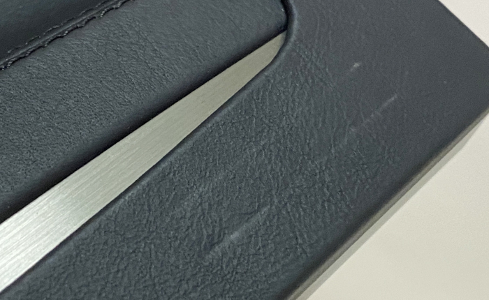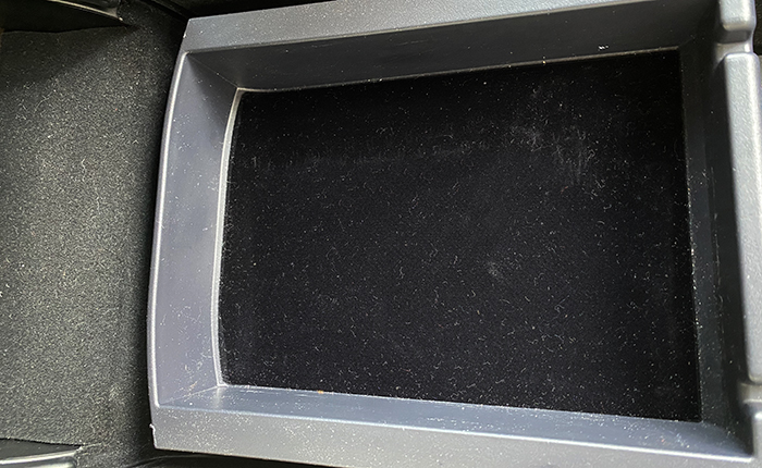 このトレーは運転席側に画像のような凹みの筋が2本入っていました。以前ショックでしたが、最近はこういう使用感を如何に直すかが楽しく、知恵をしぼってどのように対処するか考えるのが楽しい変態です(^^;