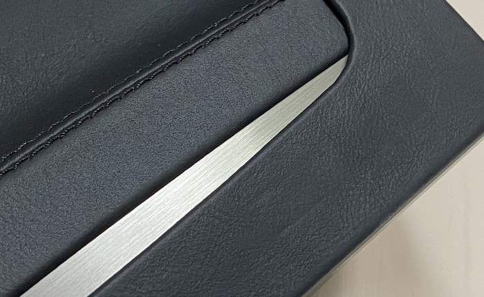 しかしながら、本革にダブルステッチ&ヘアライン仕上げの金属のアクセント