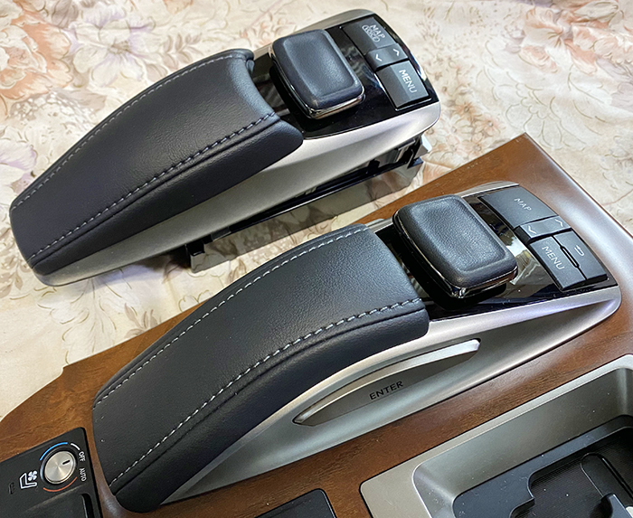 2015年9月での年次改良でリモートタッチスイッチが変更され、スイッチサイド左右にエンターボタンが追加され外観も独特の形状をしています。ナビシステムを後期型最終モデルにしない限りボタン全ての機能を使えませんが、雰囲気を楽しむ目的で交換することに。