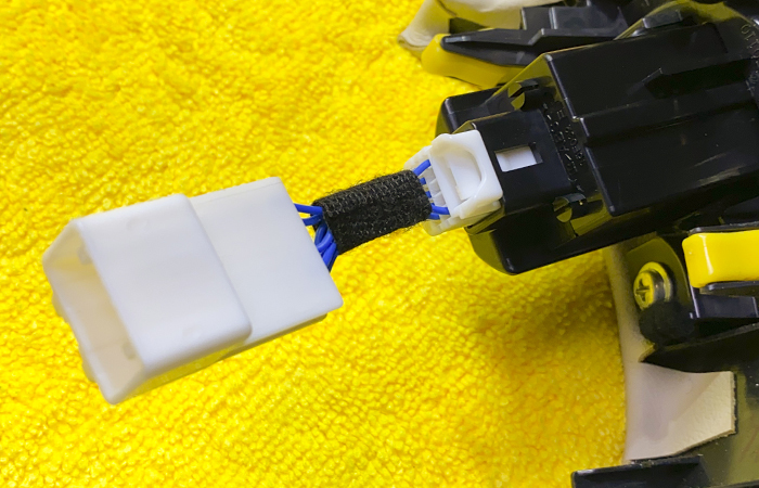 変換コネクターを装着し、LS600hLのダッシュハーネスに接続。