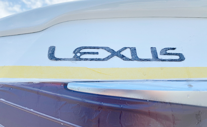 LSのトランクはエンブレムが貼り付けられているスペースが狭いので、エンブレムスペースがごちゃごちゃしてる感じます。すっきりした見た目を目指して左端のLEXUSエンブレムを取り外しました。