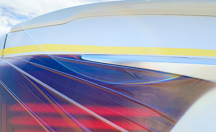 取り外しは市販のエンブレム外しを使用、ステッカー剥がし剤を軽くスプレーしてから作業を行うので、エンブレムより下はマスキングして覆っています。