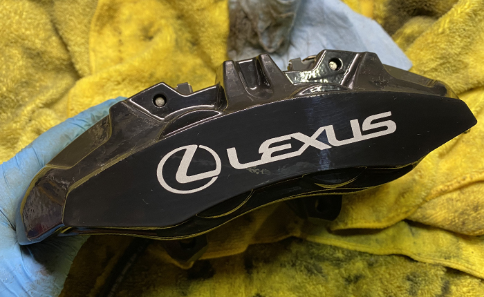 LS600hL 純正2POTキャリパーから、LS500 Fスポーツ用4POTキャリパー化、40系後期Fスポーツもフロントはブレンボ製ですがリヤは標準仕様と共通でちょっと残念、フロント同様ADVICS製となり、装着両はフロントキャリパー同様、仕上げも純正仕上げの黒ボディーに、白LEXUSロゴ、40系後期FスポーツのものはフロントのみLEXUSロゴが入りリヤがロゴ無しなので少し物足りない部分を、しっかりカバーしてくれています♪