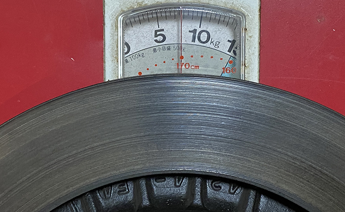 ブレーキローターの大径化、キャリパー変更に伴う重量増加がどれ位か興味が湧き、それぞれ単品で重量測定した結果が下の図になります。フロントは7.6Kg増加、リヤはなんと増加なし、LS500 Fスポーツリヤローターが大径化しているにもかかわらず軽量という結果にびっくり。