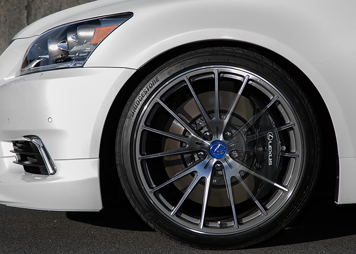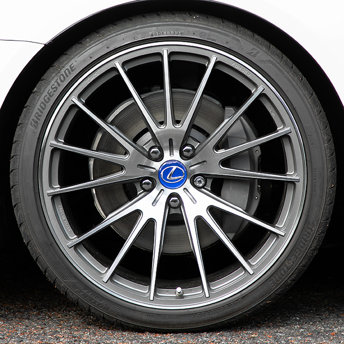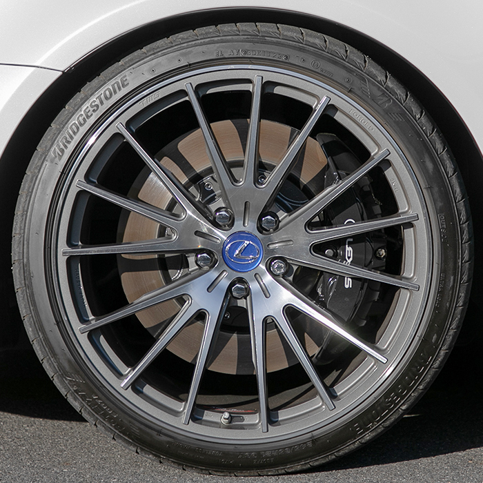 リヤはキャリパーにLEXUSロゴも入り、ローターの大径化