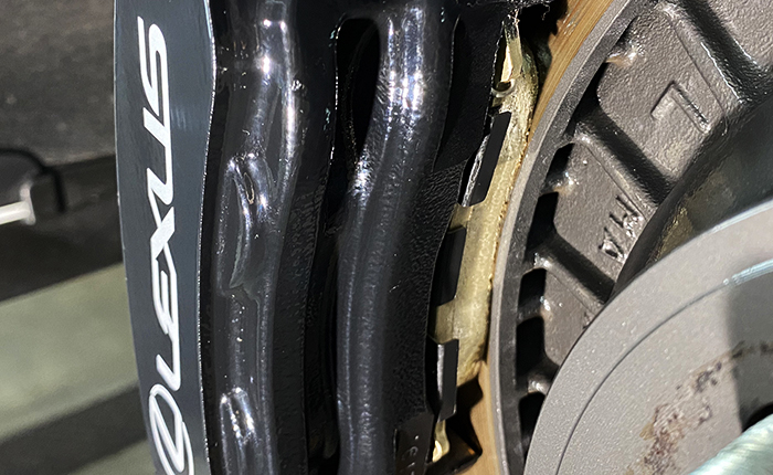 LS600hL 純正4ポッドキャリパーから、LS500 Fスポーツ用6POTキャリパー化、キャリパーは40系後期Fスポーツの6POTキャリパーのブレンボ製とは異なり、国産ADVICS製となります。このキャリパーはLC500/LS500h用に開発され、LS500 Fスポーツにもグレード専用装備として装着されています。