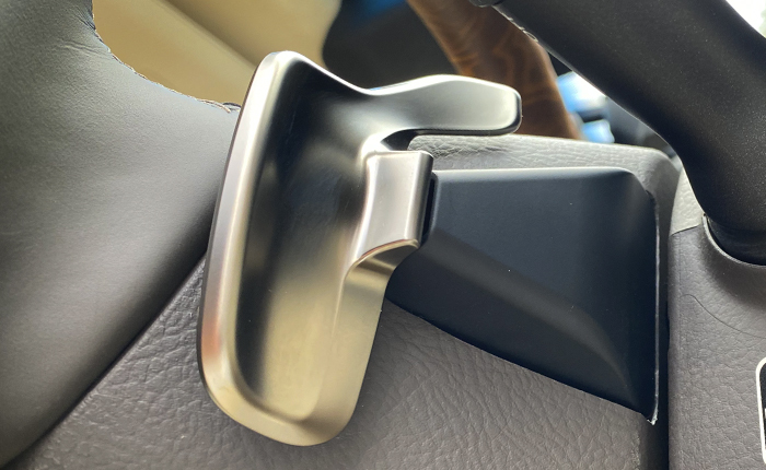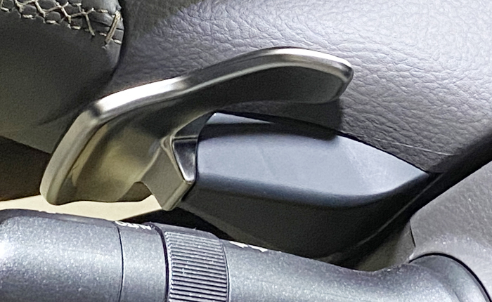 左右それぞれのパドルシフト、メタルの感じがブラウンと良いコントラストになっています!