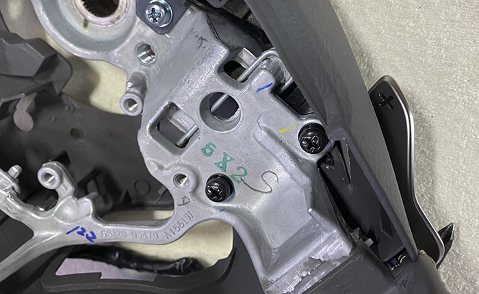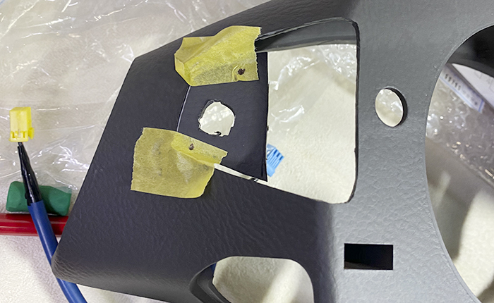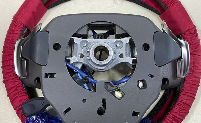 このあと、ステアリング内のバドルシフト関係のハーネス処理を済ませ、車両装着へ。