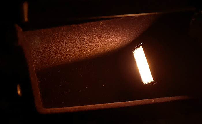 リヤドアに設置されている小物入れ、イルミネーション透過の窓はあるのですがスモールで点灯せず。当然ながら夜間は真っ暗で小物入れとしての機能は果たせません。その前に小物入れが小さすぎて使い物になりませんが、せっかく設置されているのなら、使い勝手向上の改良を行う良いネタになるので、私なりのイルミネーション点灯化を行いました。