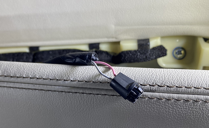 元々の状態はドアハーネス一体で、電球ハウジングからソケット抜いて取り外す構造ですが、LED加工に伴いハーネスとLEDの足をハンダつけしているのもあり、もし取り外すことがある場合加工部分に負担がかからないように、エーモン製の小型2極コネクターを利用して中継コネクターを設置。
