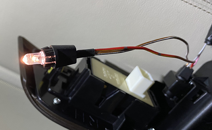 スモール連動でLEDを光らせる微弱な電流がきているのことを確認。