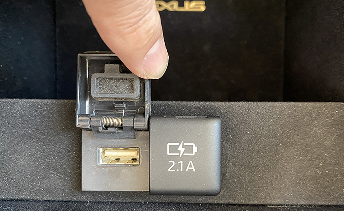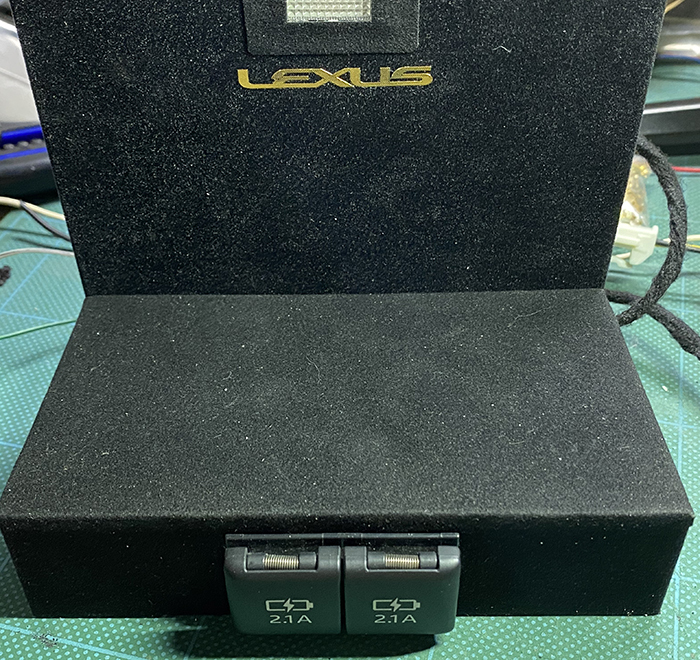 USB充電全盛の現代、40系LS後期は車内にいくつか通信を兼ねたUSBソケットがありますが、車内での利便性を高めるべく後席にUSBジャージャーを設置することにしました。設置するにあたりトヨタ純正品を流用(←コレ重要)し、使用性を兼ね備えた場所に純正風に設置するべく、知恵を搾って設置場所の検討を行いました。トヨタUSBチャヤージャーは、ネットオークションを利用してコネクター付きを入手。