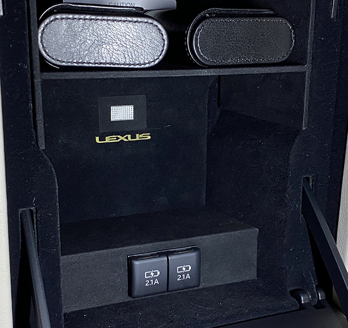 スペースの関係上、ストレートUSBコネクターだと、センターコンソールの蓋が閉まりませんが、L型のUSBコネクターだと、スマホ1台になりますが、センターコンソールの蓋を閉めた状態で充電可能。急ブレーキで飛び出すことはなく、使用性もある程度考慮した仕様になりました♪